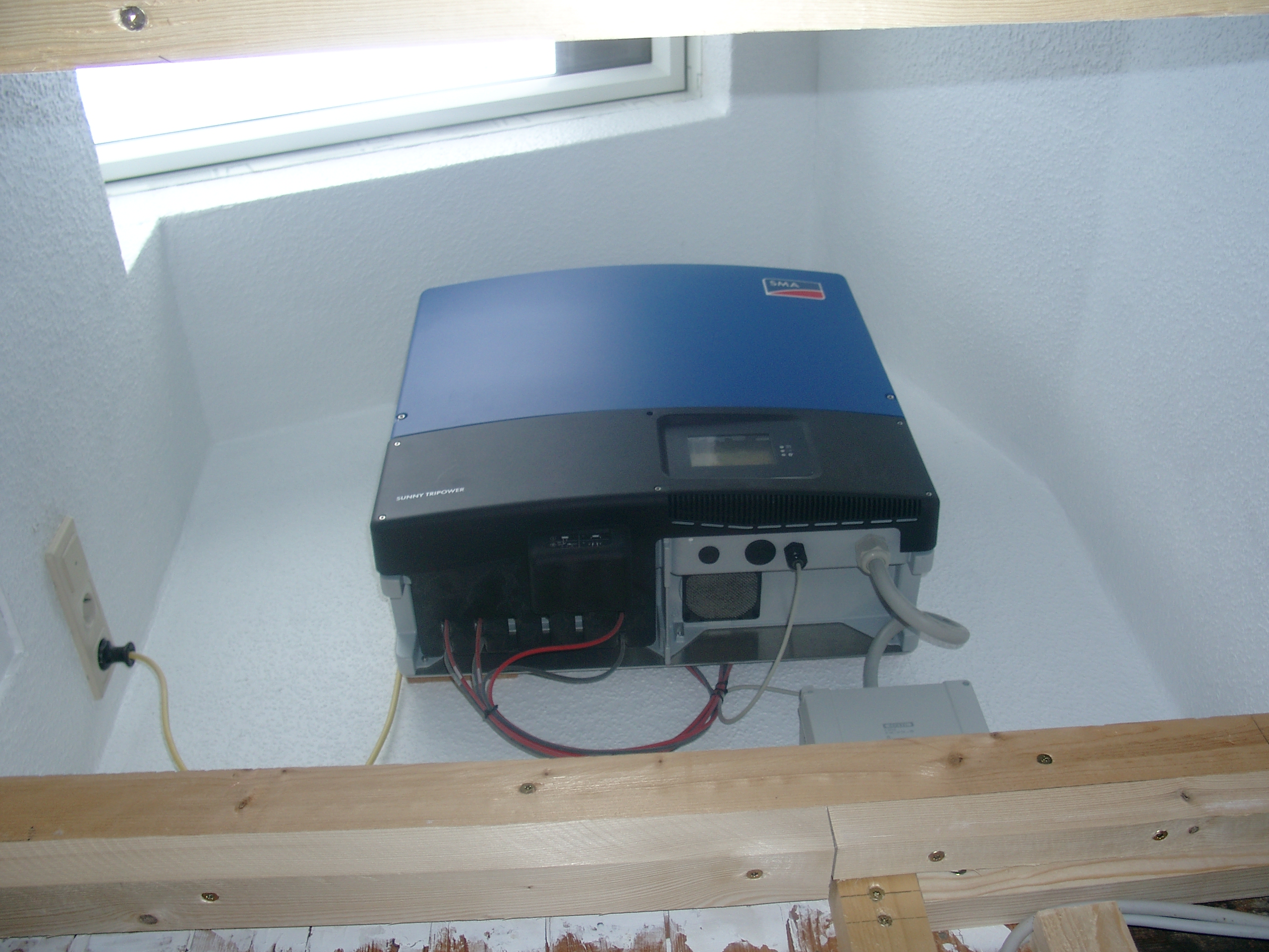Der Wechselrichte - direkt unterm Dach, was die Gleichstromverkabelung erheblich "nach oben" verlagert