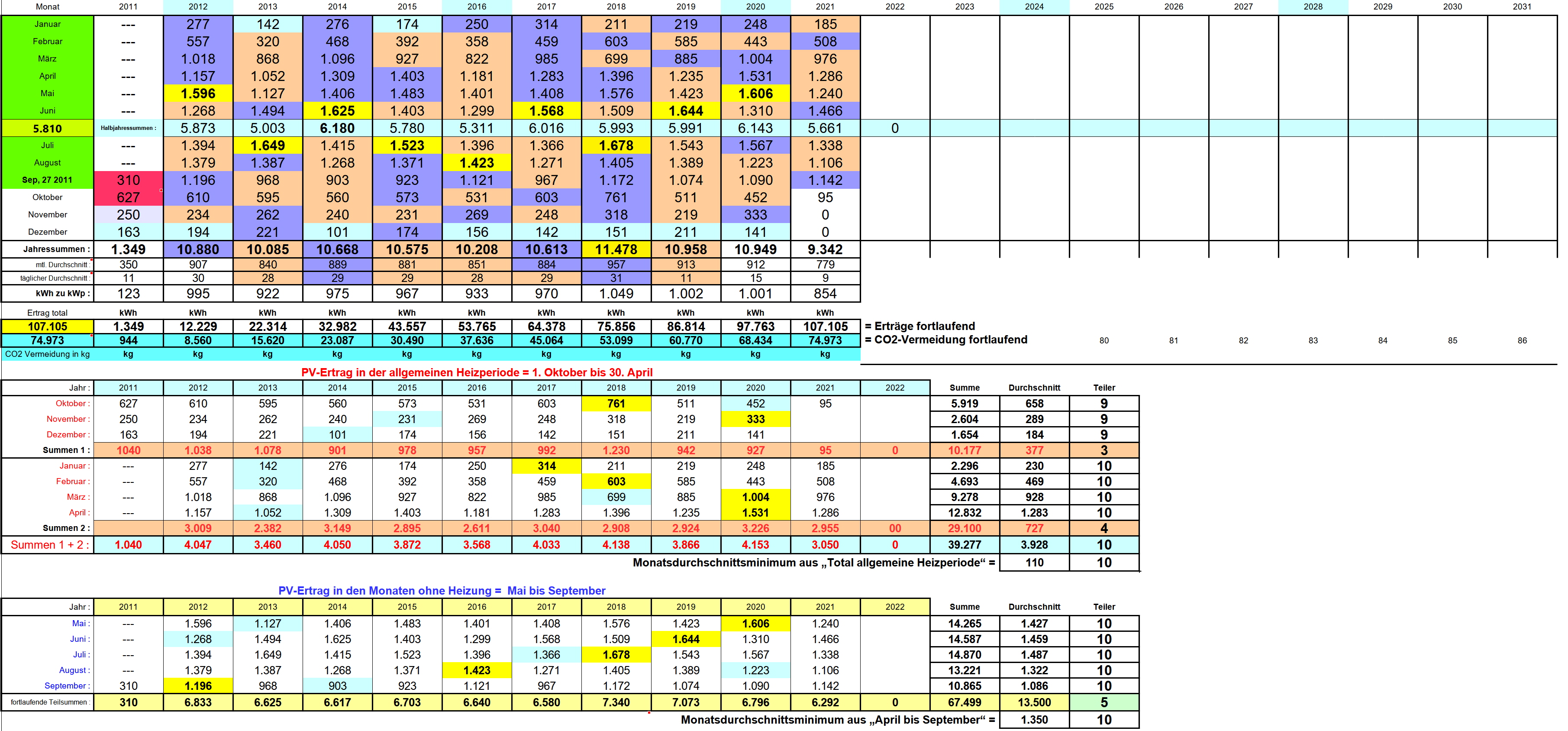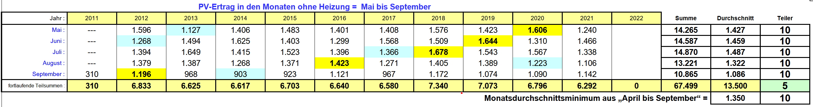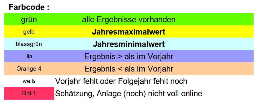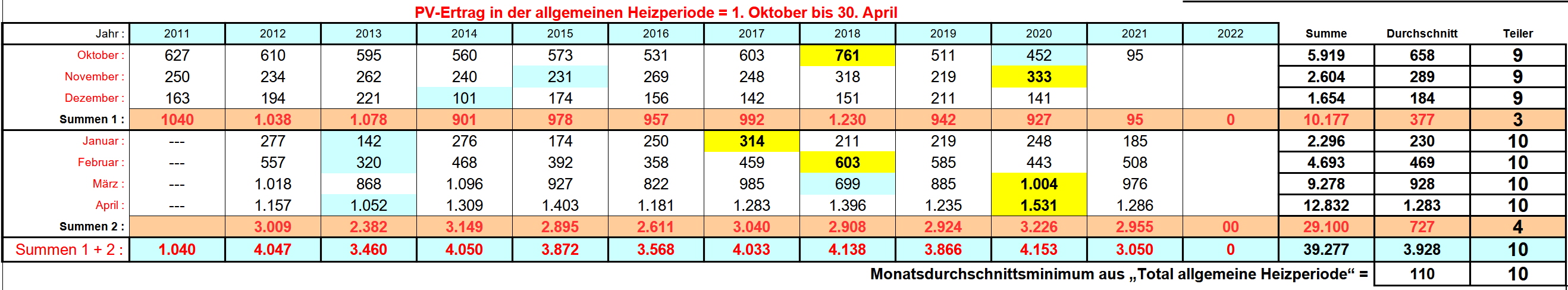 Jahresübersichten : Erträge zwischen Oktober / April Erträge von Mai bis September